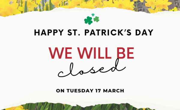 We’d like to wish all of our customers a Happy St Patrick’s Day and remind everyone that we’re closed...
